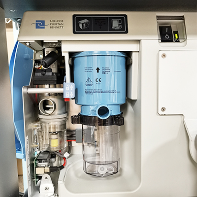 PB840呼吸機(jī)在運(yùn)行過程中出現(xiàn)阻塞報(bào)警,通常是由兩種情況導(dǎo)致,可能是管道出現(xiàn)積水或折疊,,也可能是吸入端或呼出端發(fā)生過濾器堵塞。
