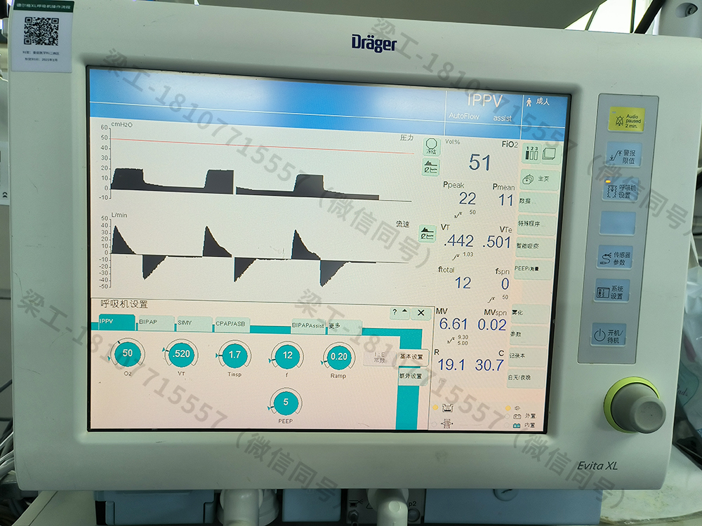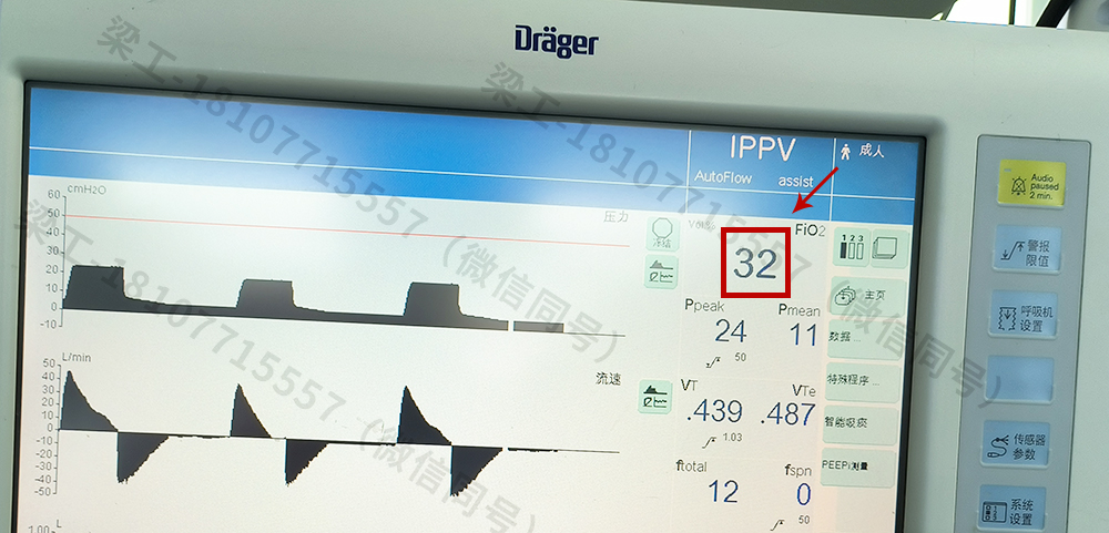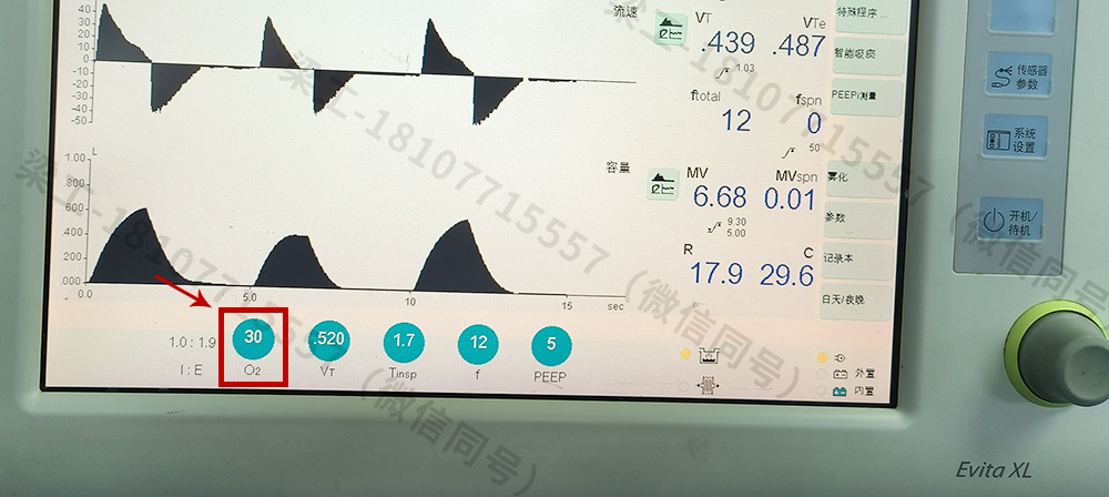 接好氧氣管和空氣管,然后開機(jī)到正常工作頁面