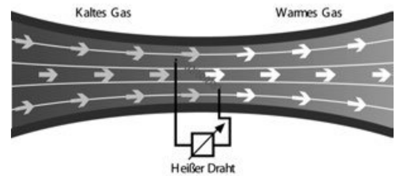熱絲式流量傳感器式通過氣體流過時熱絲式的溫度變化量轉換為流量進行檢測,熱量控制系統(tǒng)增加電流保持熱絲恒定溫度,氣體流速與電流產(chǎn)生量成比例,流量和電流是非線性關系;線性化的實現(xiàn)通過微處理器及軟件進行,以便產(chǎn)生可重復性流速的分布。熱絲式電橋的一段,流量變化時熱絲的溫度、阻抗和電流變化,橋路不平衡,輸出電壓變化換算出流量。